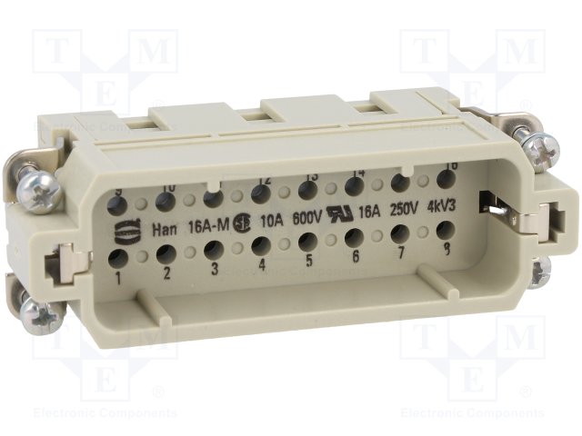 Разъем: HAN; "папа"; PIN: 16; 16+PE; размер 16А; без контактов; 250В |