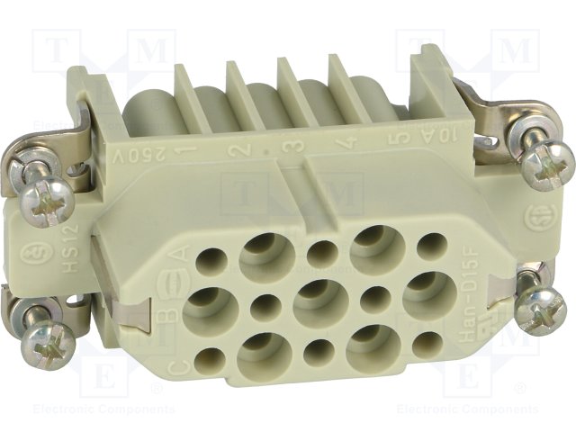 Разъем: HAN; "мама"; Han D; PIN: 15; 15+PE; размер 10А; 250В |