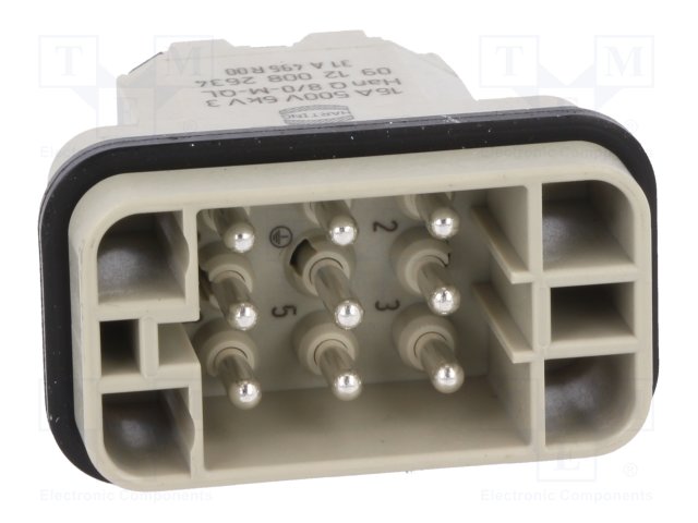 Разъем: HAN; "папа"; Quick Lock; PIN: 6; 5+PE; размер 3А; 16А; 400В |