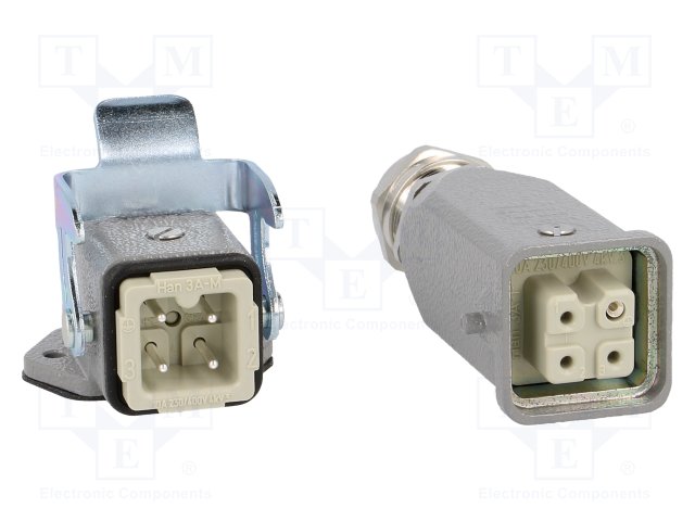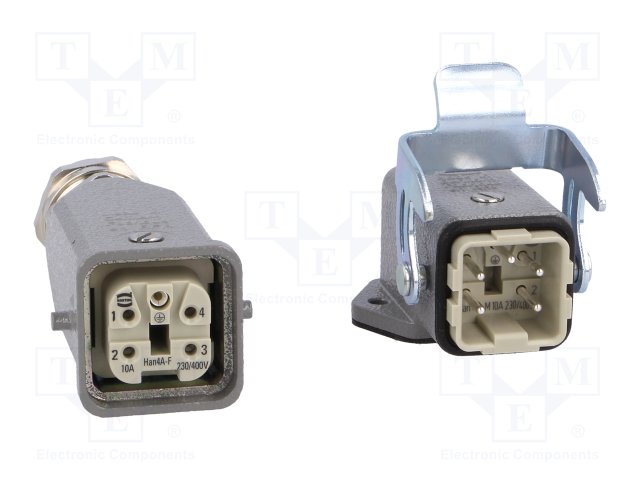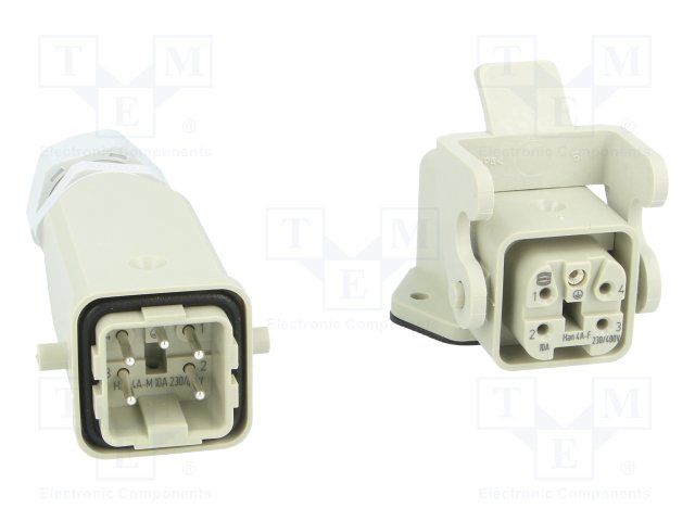 Разъем: HAN; "папа" + "мама"; гнездо + вилка; Han Kit; PIN: 4; 3+PE |