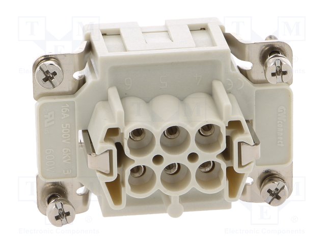 Разъем: HDC; контактная вставка; "папа"; S-E; PIN: 6; 6+PE; 16А; 500В |