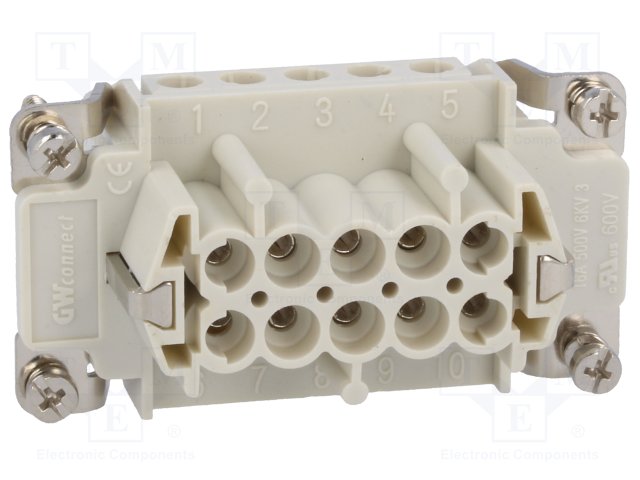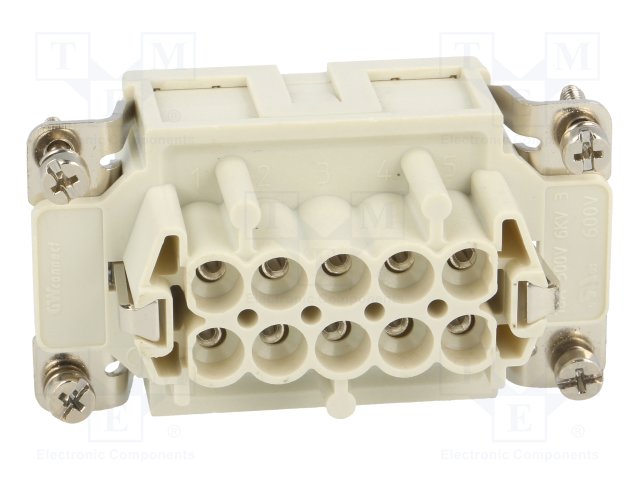 Разъем: HDC; контактная вставка; "папа"; S-E; PIN: 10; 10+PE; 16А |