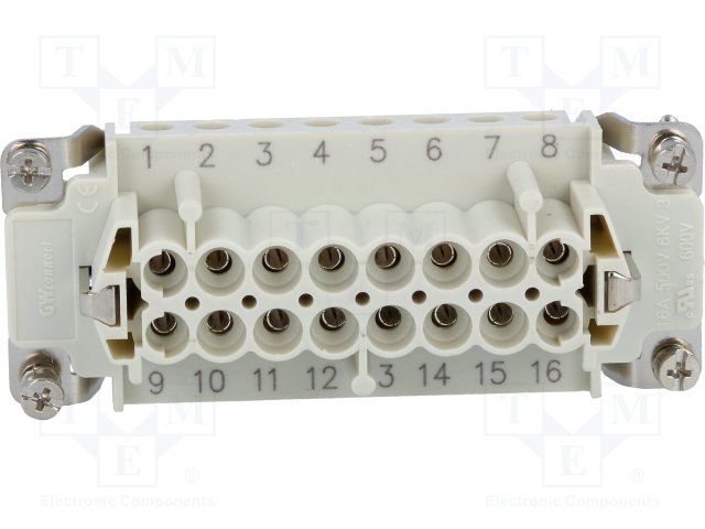 Разъем: HDC; контактная вставка; "папа"; S-E; PIN: 16; 16+PE; 16А |