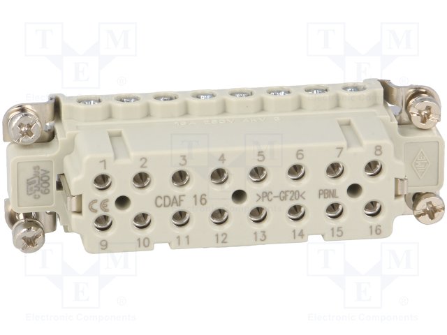 Разъем: HDC; "мама"; CDA; PIN: 16; 16+PE; размер 66.16; 16А; 250В |
