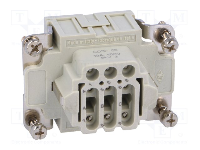 Разъем: HDC; "мама"; CDS; PIN: 9; 9+PE; размер 44.27; 10А; 400В |