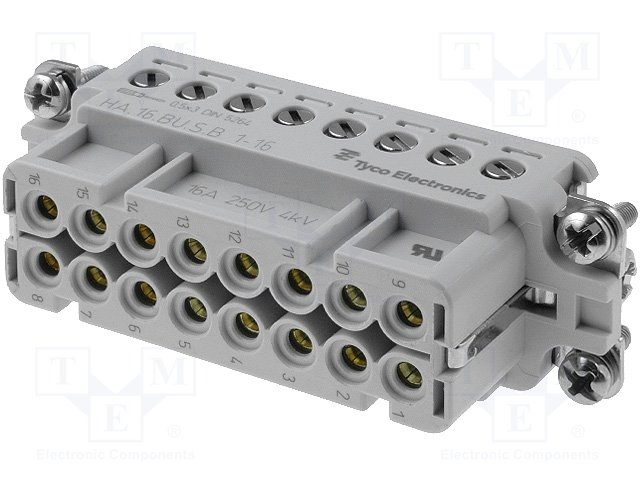Разъем: HTS; "мама"; HTS HA; PIN: 16; размер 5; 16А; 250В; 0,5÷2,5мм2 |