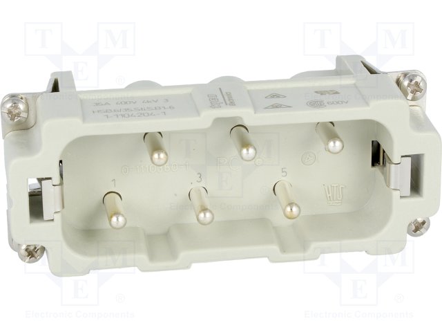 Разъем: HDC; "папа"; HSB; PIN: 6; 6+PE; размер 6; 35А; 400В; 1,5÷6мм2 |