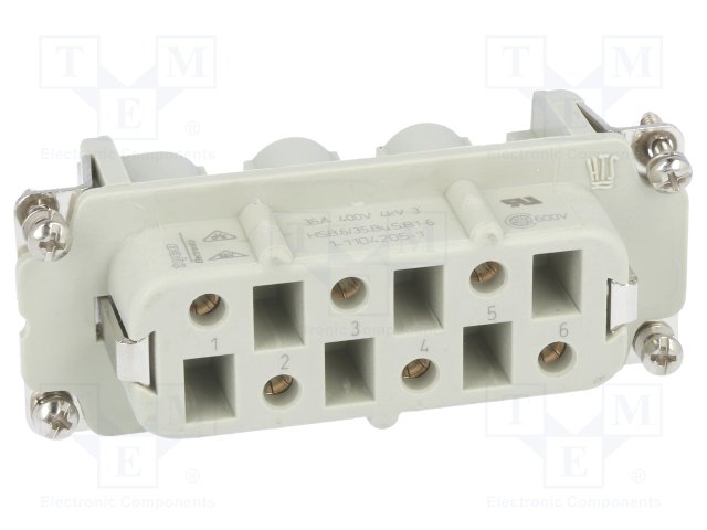 Разъем: HDC; "мама"; HSB; PIN: 6; 6+PE; размер 6; 35А; 400В; 1,5÷6мм2 |