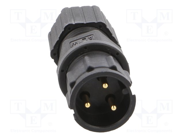 Вилка; Разъем: круглый; размер D; "папа"; PIN: 3; позолота; 20А; IP67 |