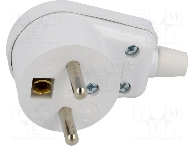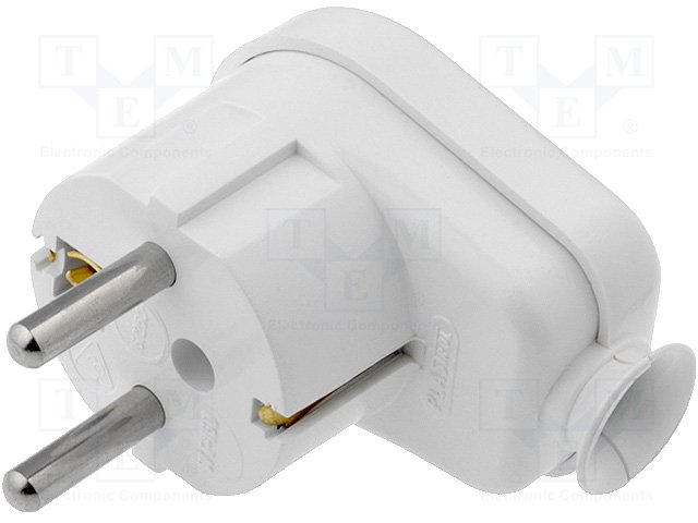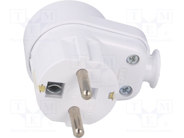 Разъем: питания AC; вилка; Конфиг.выводов: 2P+PE; белый; 230ВAC |