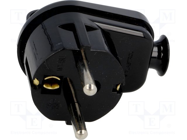 Разъем: питания AC; вилка; Конфиг.выводов: 2P+PE; черный; 250ВAC |
