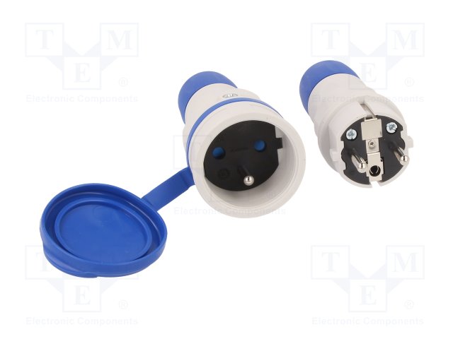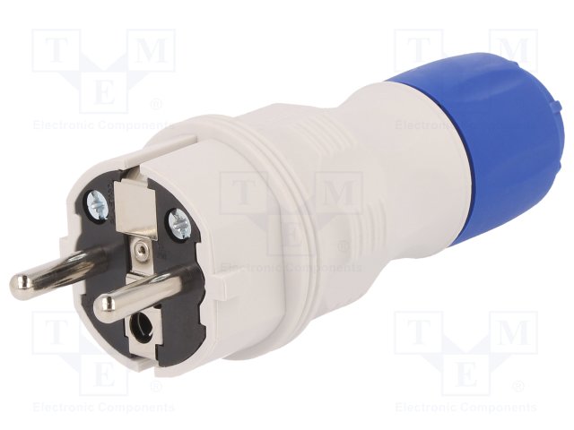 Разъем: питания AC; вилка; Конфиг.выводов: 2P+PE; синий,серый |