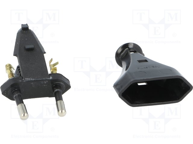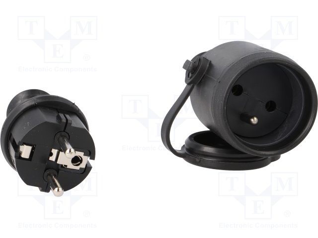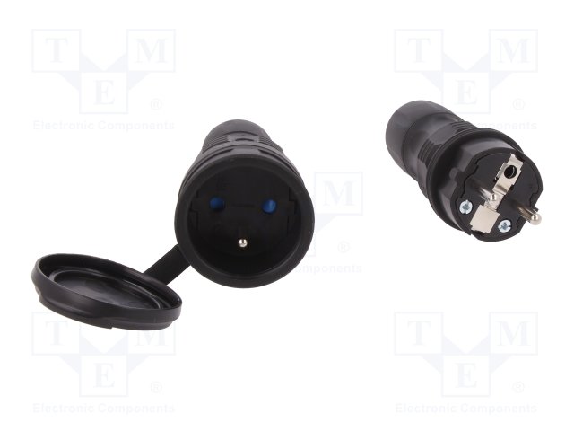 Разъем: питания AC; гнездо,вилка; Конфиг.выводов: 2P+PE; черный |
