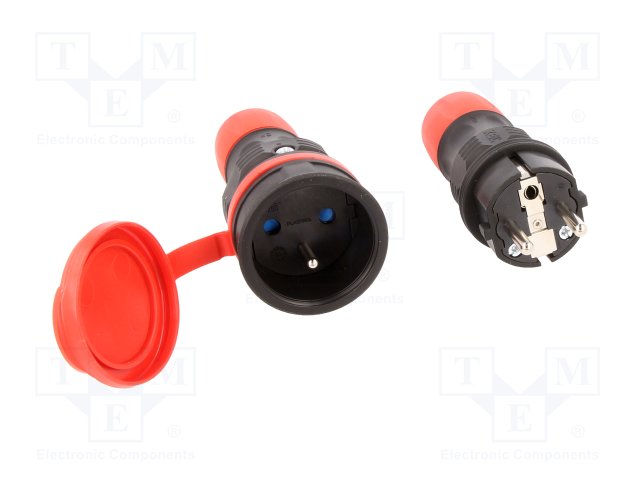 Разъем: питания AC; вилка; Конфиг.выводов: 2P+PE; черный,красный |