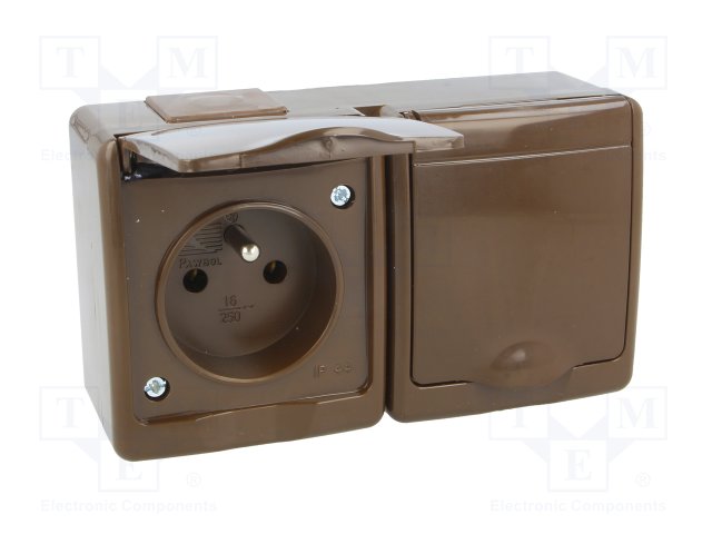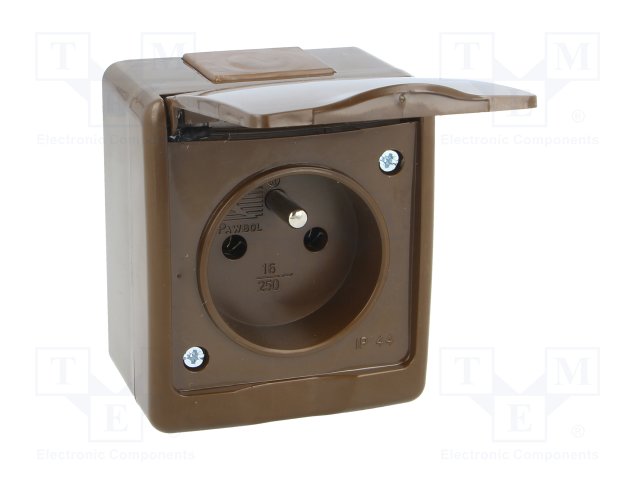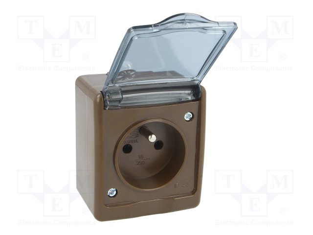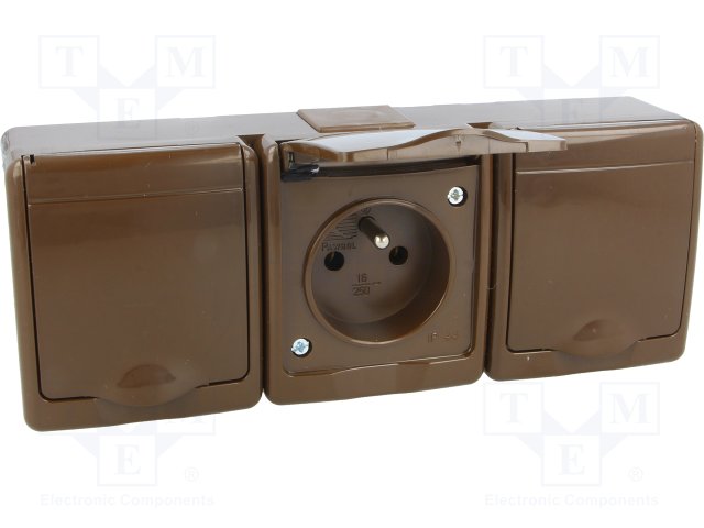 Разъем: питания AC; гнездо; Конфиг.выводов: 2P+PE; коричневый |