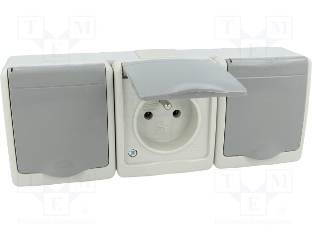 Разъем: питания AC; гнездо; Конфиг.выводов: 2P+PE; серый; 250ВAC |