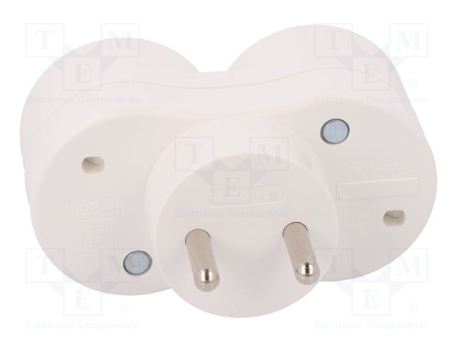 Разъем: питания AC; разветвитель; Конфиг.выводов: 2P; белый; 16А |