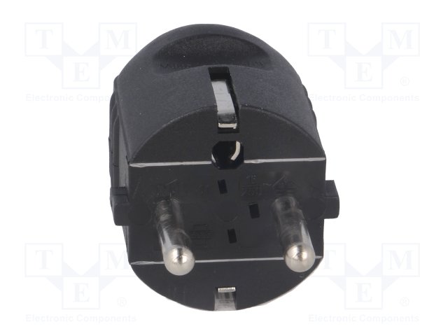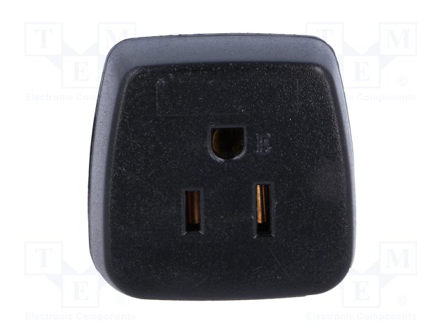 Переходник: адаптер; Конфиг.выводов: 2P+PE; черный; 230ВAC; 3А |