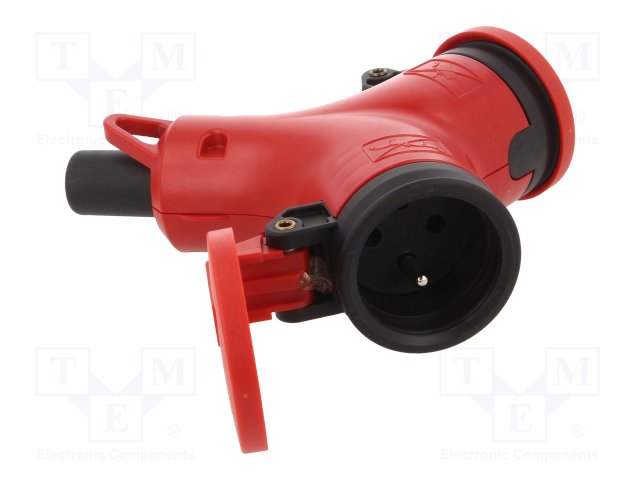 Разъем: питания AC; разветвитель; Конфиг.выводов: 2P+PE; красный |