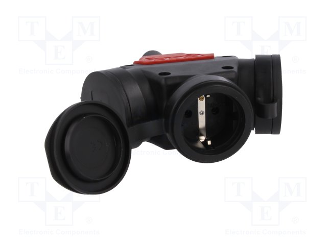 Переходник: адаптер; Конфиг.выводов: 2P+PE; черный; 230ВAC; 15А |