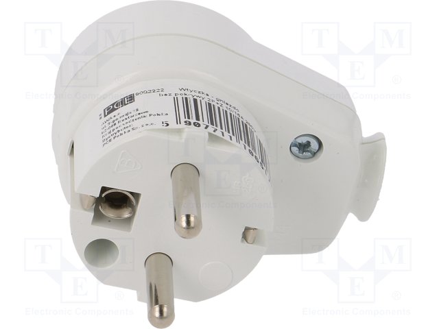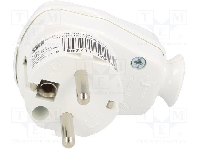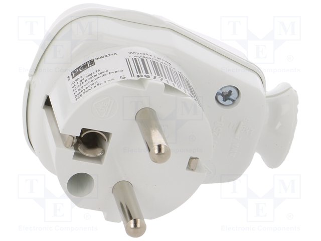 Разъем: питания AC; вилка; Конфиг.выводов: 2P+PE; белый; 230ВAC |