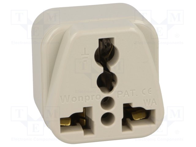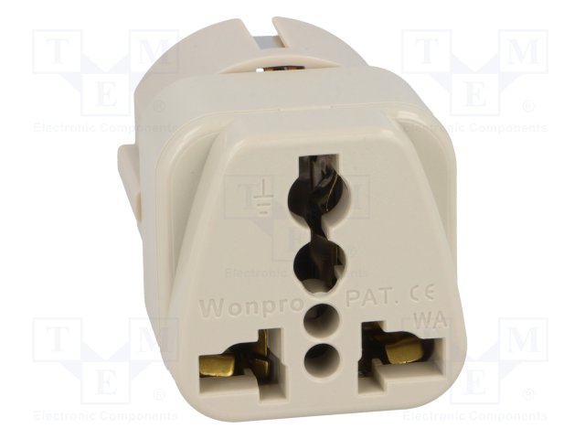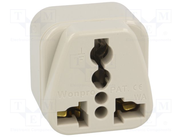 Переходник: адаптер; Конфиг.выводов: 2P+PE; белый; 125ВAC; 15А |