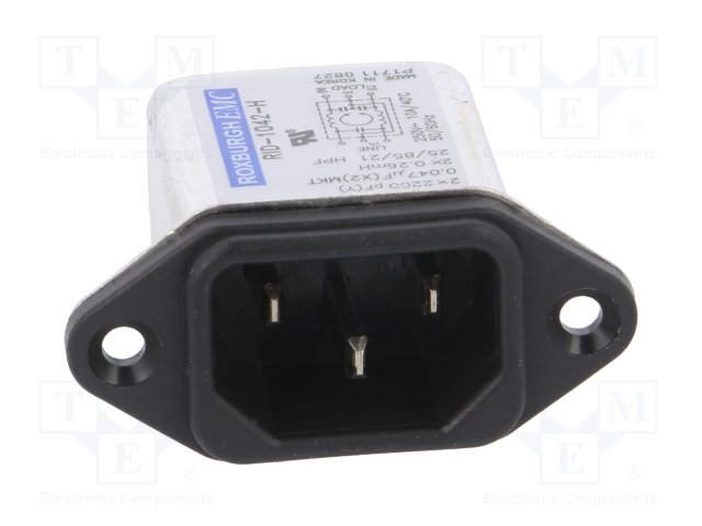 Разъем: питания AC; гнездо; "папа"; 10А; 250ВAC; IEC 60320; 0,26мГн |