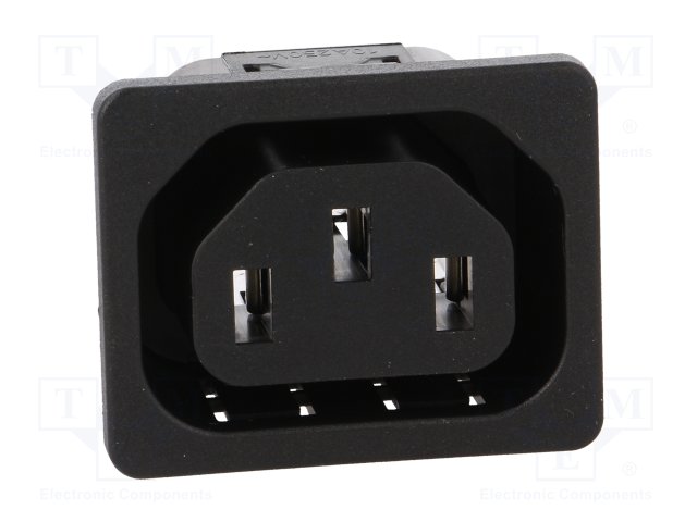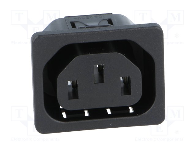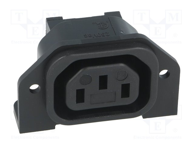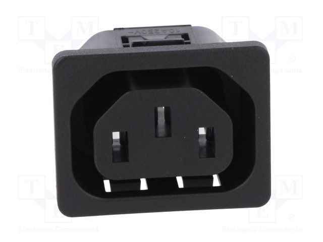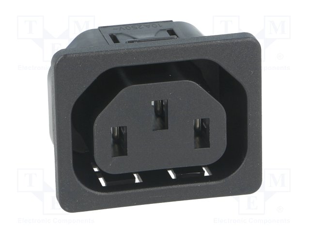 Разъем: питания AC; гнездо; "мама"; 10А; 250ВAC; C13 (F); макс.8мм |