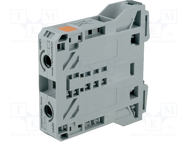 Соединитель: на рейку; 2,5мм2; Кол-во полюс: 1; клеммы: 2; серый |