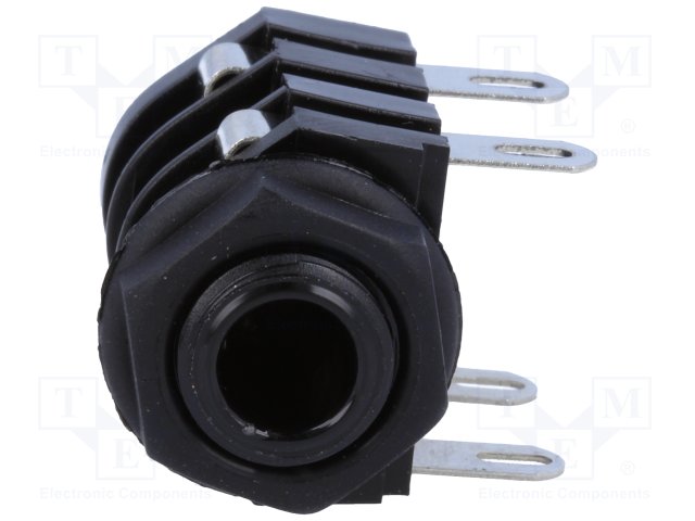 Гнездо; Jack 6,35мм; "мама"; stereo,с заземлением; прямой; THT