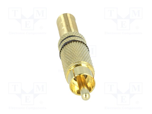 Вилка; RCA; "папа"; с амортизатором; прямой; пайка; позолота; 5мм |