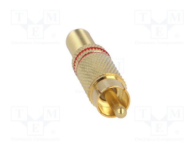 Вилка; RCA; "мама"; с амортизатором; прямой; пайка; красный |