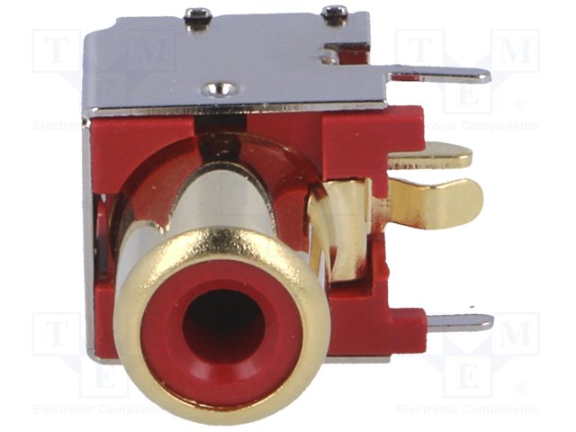 Гнездо; RCA; "мама"; MINI; угловой 90°; THT; Маркировка: красный |