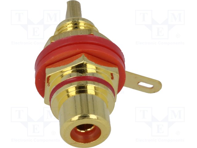 Гнездо; RCA; "мама"; позолота; на панель; Маркировка: красный; 6мм |