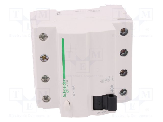 Аварийный выключатель; Iном: 40А; Iдифф: 30мА; Ударный ток: 250А |