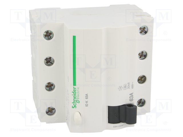 Аварийный выключатель; Iном: 63А; Iдифф: 30мА; Ударный ток: 250А |