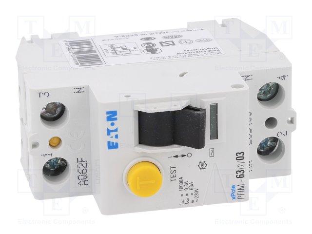 Аварийный выключатель; Iном: 63А; Iдифф: 30мА; Ударный ток: 3кА |