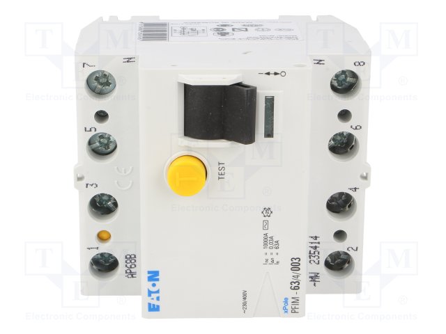 Аварийный выключатель; Iном: 63А; Iдифф: 30мА; Ударный ток: 250А |