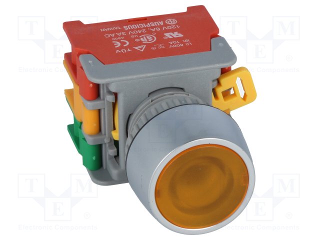 Switch: push-button; 1-position; NC + NO; 3A/230VAC; 22mm; yellow |