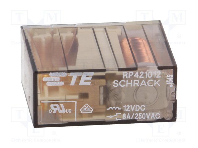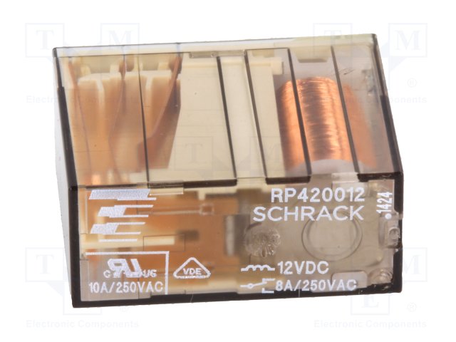 Реле: электромагнитное; SPDT; Uобмотки: 12ВDC; 8A/250ВAC; 8A/24ВDC |