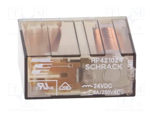 Реле: электромагнитное; SPDT; Uобмотки: 24ВDC; 8A/250ВAC; 8A/24ВDC |