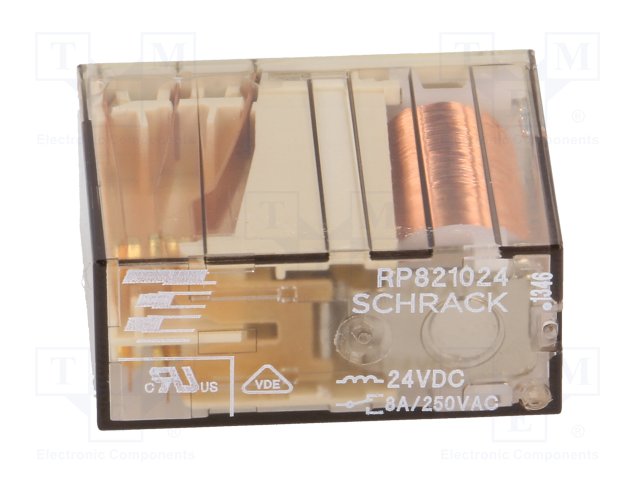 Реле: электромагнитное; DPDT; Uобмотки: 24ВDC; 8A/250ВAC; 8A/24ВDC |