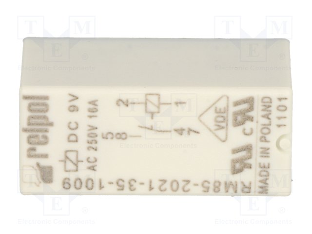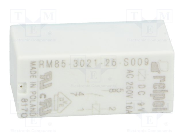 Реле: электромагнитное; SPDT; Uобмотки: 9ВDC; 16A/250ВAC; toff: 3мс |