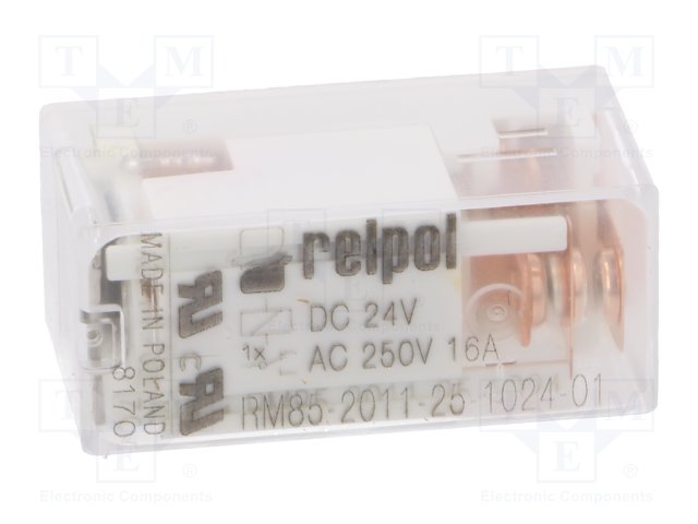 Реле: электромагнитное; SPDT; Uобмотки: 24ВDC; 16A/250ВAC; 480мВт |