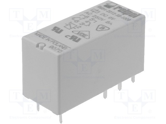 Реле: электромагнитное; DPDT; Uобмотки: 9ВDC; 8A/250ВAC; 8A/24ВDC |
