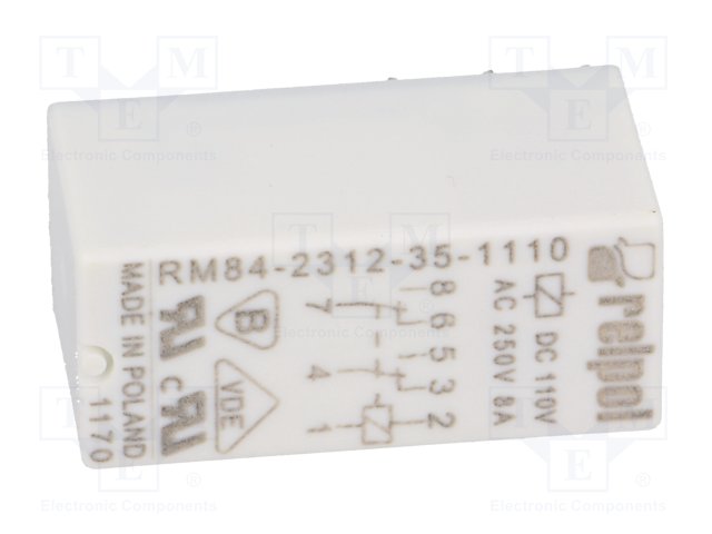 Реле: электромагнитное; DPDT; Uобмотки: 110ВAC; 8A/250ВAC; 8А; IP67 |