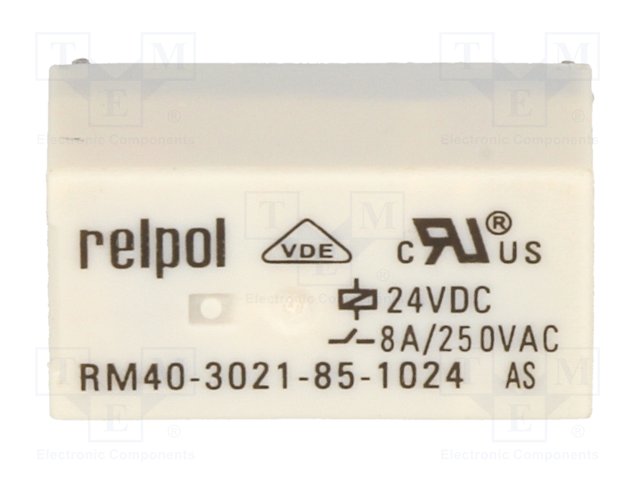 Реле: электромагнитное; SPST-NO; Uобмотки: 24ВDC; 8A/250ВAC; 8А |