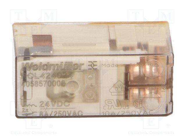 Реле: электромагнитное; SPDT; Uобмотки: 24ВDC; 8A/250ВAC; 8A/28ВDC |