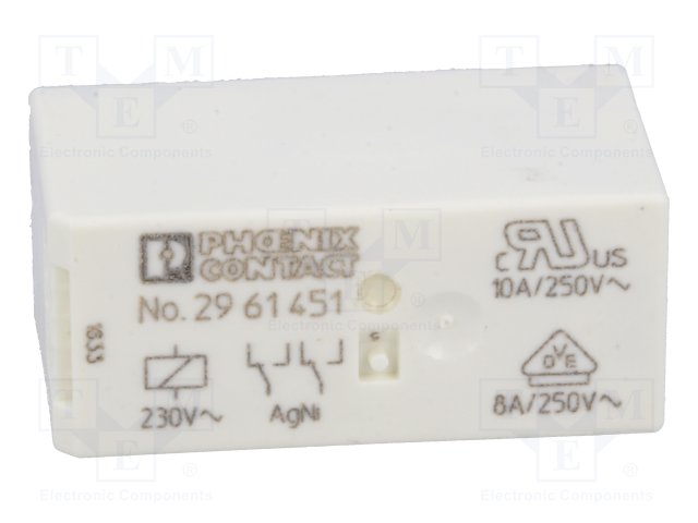 Реле: электромагнитное; SPDT; Uобмотки: 230ВAC; 16A/240ВAC; 50мОм |