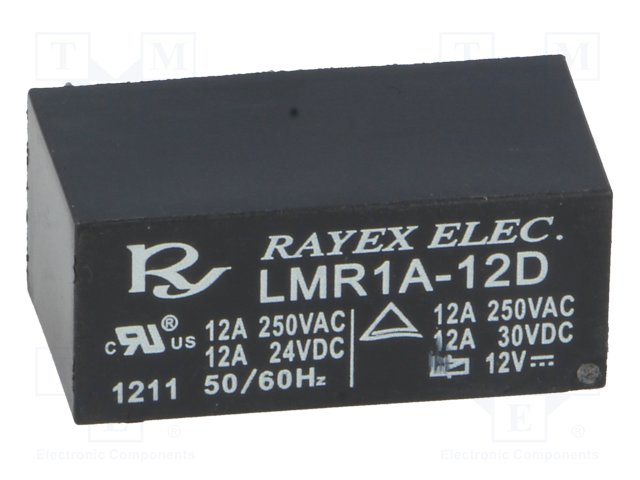 Реле: электромагнитное; SPDT; Uобмотки: 12ВDC; 12A/250ВAC; 530мВт |